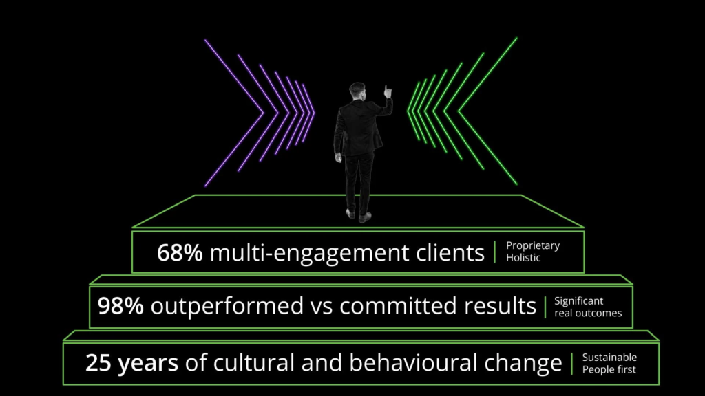 Our ambition is to help organisations outperform competitors and redefine their future and impact on the world. We go beyond strategies, reports, and recommendations. Our clients achieve real results and are equipped to sustain the change.